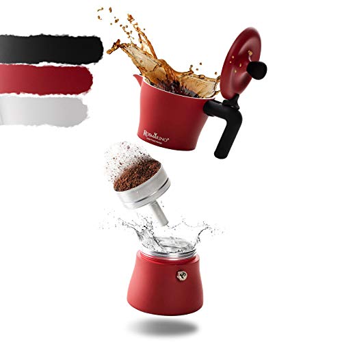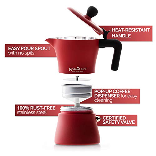 ROSMARINO - Cafetera expreso para inducción y todo tipo de fuegos, para café italiano auténtico, 3 tazas de café expreso, color rojo