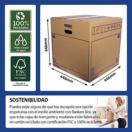 - Todas las cajas de transporte y mudanza Bankers Box están fabricadas en cartón reciclado con certificación FSC y 100% reciclable