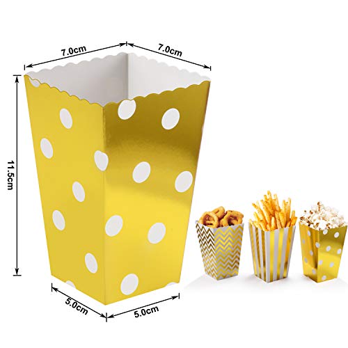 BUYGOO 60 Piezas Mini Caja de Fiesta de Palomitas Contenedor de Dulces para Los Bocados del Partido, Los Dulces, Las Palomitas y Los Regalos - Dorado Caramelo Bolsas