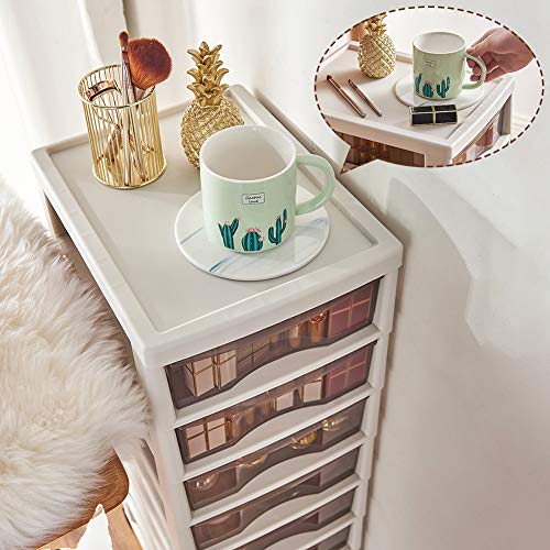 Macallen Cajonera Plastico Organizador con Ruedas, 6 Cajones Desmontable Carro de Almacenamiento para Oficina/Estudio/Dormitorio, Cajón de Organización Multifunción