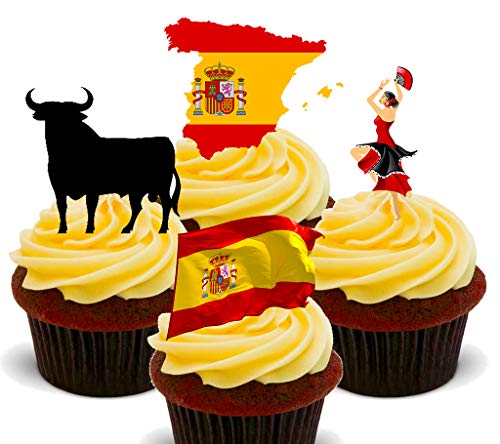 España Fun Pack, comestible cupcake toppers – Pie oblea decoraciones para tartas, 12 unidades