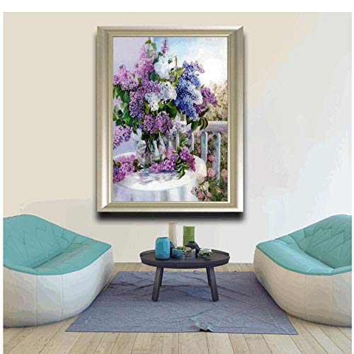 5D DIY Diamante pintura Jarrón de lavanda púrpura Punto de cruz Set Diamante Bordado Rhinestone Casa decoración regalo 30x40cm