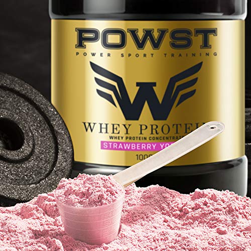 Bote Proteina Whey, Proteína de suero de leche en polvo, 1Kg (sabor Yogur con Fresas) POWST