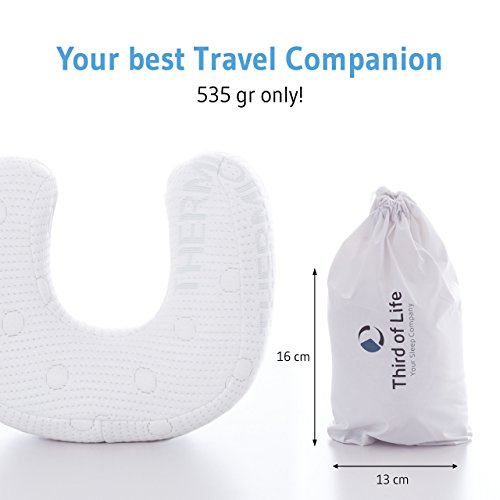 Third of Life Almohada de Viaje Andar en Forma de U | Cojín Ergonómico de Espuma Viscoelástica | Funda con Termorregulación Viajar en Tren, Avión y Coche | 30x26x13/10 cm