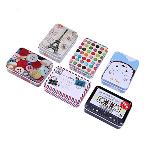 Toyvian Novedad Mini Caja de Hojalata de Hierro Tarjetas de Joyería Monedas Cajas de Almacenamiento de Dulces Dibujos Animados Lindos Caja de Latas Rectangulares 6 Piezas