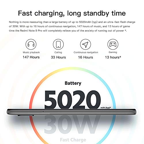 Xiaomi Redmi Note 9 Pro Smartphone, 6GB RAM 128GB ROM, Pantalla de Puntos de 6.67", Procesador Qualcomm Snapdragon 720G, Cámara Cuádruple AI (64MP + 8MP + 5MP + 2MP) Versión Global (Gris)