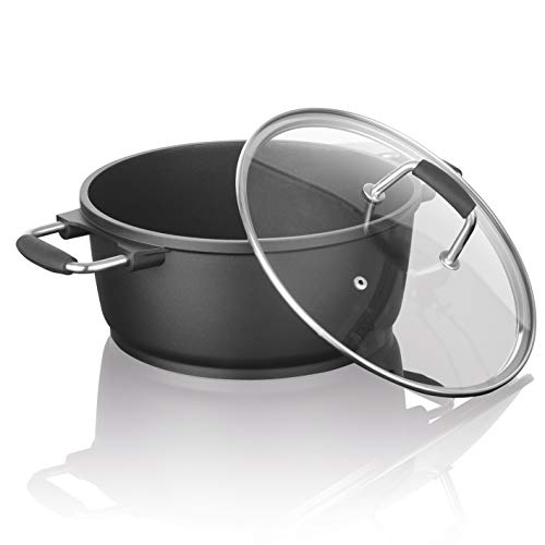 Bratoni Cacerola de aluminio fundido con tapa de vidrio de 20 cm | Doble capa antiadherente"Greblon" para cocinar casi sin grasa | Todos los tipos de utensilios de cocina excepto los de inducción