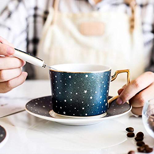 HRDZ Taza Taza de Hotel Mujer cafetería Masculina Cerámica de Cielo Estrellado Juego de Taza y Plato de café Pequeño Contorno Oro Té de la Tarde Té perfumado Taza de té Rojo A 8.5 * 6.5cm
