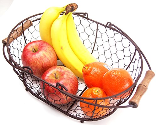 CVHOMEDECO. Cesta de Huevos rústica de Alambre con asa de Metal Cesta de reunión Primitivos Vintage. Oxidado, Dia. 19,7 x H 12,7 cm
