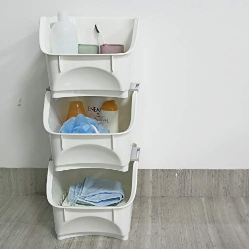 Lesbye Cesta de Almacenamiento Apilable, Blanco, 3 Tier Cesta de Apilamiento