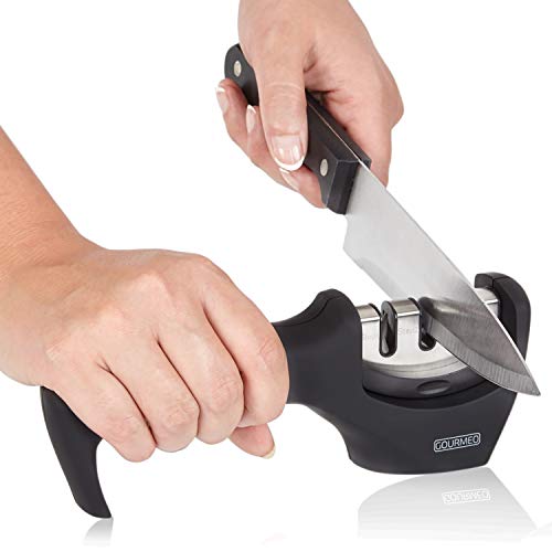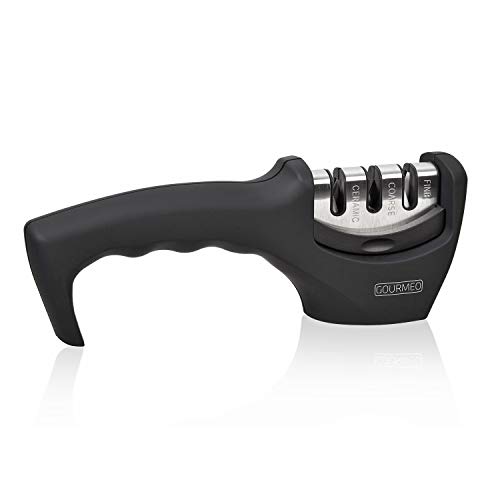 ✯✯ CALIDAD PREMIUM ✯✯ Fabricado en acero inoxidable, plástico ABS y piedras de afilar de excelente calidad, el afilador de cuchillos GOURMEO ofrece una gran durabilidad y un resultado de afilado óptimo
