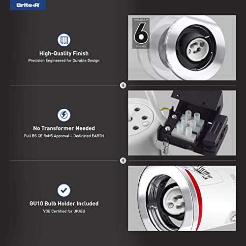 Foco LED empotrable GU10 resistente al fuego cromado pulido, Brite-R, chapa de acero IP20, compatible con halógeno, con certificación CE, fácil instalación, bombilla no incluida.