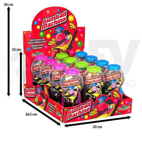 FunnyCandy Máquina Dispensadora De Bolas De Chicle 3 Colores, Sabores Variados - 12 Unidades