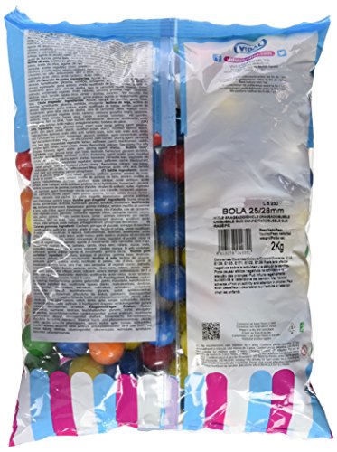 Vidal Golosinas. Bolas de Chicle Grageado de 16 mm. Surtido de deliciosos sabores: limón, naranja, y fresa. Bolsa 2 kg