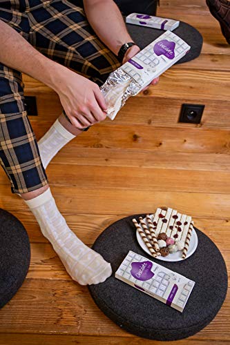 - CALCETINES DE CHOCOLATE - No puedes sobrevivir el día sin una barra de chocolate? Querrías encontrar uno que sea dulce y vegetal y que no contiene azúcar al mismo tiempo? Aquí está! Chocolate Socks Box- calcetines divertidos, perfectos para goloso. Sí, sí, no es una verdadera barra de chocolate, aunque se ve así. En la caja original hay un par de calcetines deliciosos y locos. Renuncia a tu dieta sin remordimientos y disfruta de increíbles calcetines hechos como chocolate belga real!