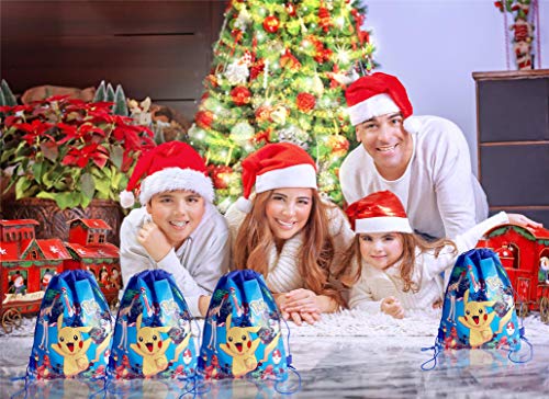 Qemsele Bolsa Mochilas Bolsas de cumpleañoscordón Dibujos Animados Mochila Bolsas para cumpleaños niños y Adultos la Fiesta favorece la Bolsa, Rellenos Bolsas Fiesta 12Pcs (Pikachu, W10 * H12)