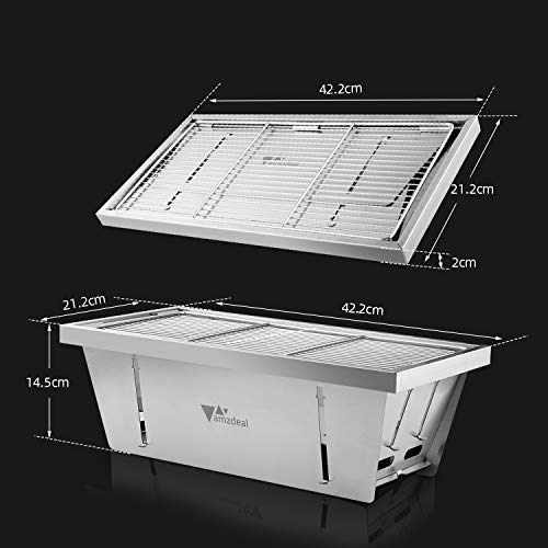 Amzdeal Barbacoa Parrilla de Carbón de Acero Inoxidable Portátil al Aire Libre Instalar y Doblar Por un Segundo Apto Para Picnic Camping Patio 3-5 Personas