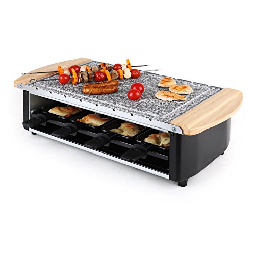 KLARSTEIN Chateubriand Raclette-Grill - Parrilla de mesa, Barbacoa-Party, 1200W, Regulador, Plancha piedra natural, Grill bajo en grasa extraíble, Antiadherente, Negro-plateado