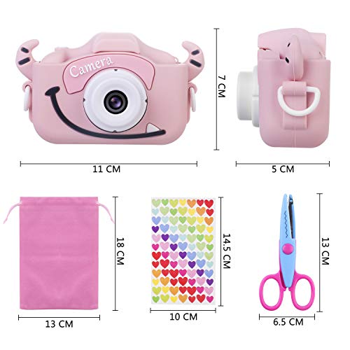 Más accesorios:Esta cámara rosa para niños viene con una tarjeta micro SD de 32G, lector de tarjetas de memoria, cable de carga USB, acollador para proporcionar protección adicional a la cámara contra caídas accidentales, bolsas de terciopelo con cordón,esquinas de montaje de foto autoadhesivas,dispositivo de estampado,Papel en relieve,Cinta de encaje,Tijeras de encaje.