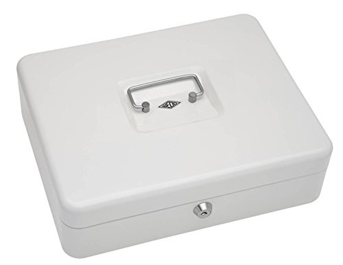 Wedo 145400X - Caja metálica para dinero (2 llaves, soporte para monedas desprendible, acero soldado, 30 x 24 x 9 cm), color blanco