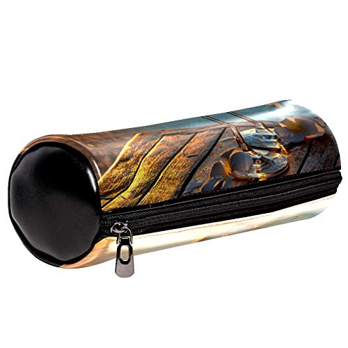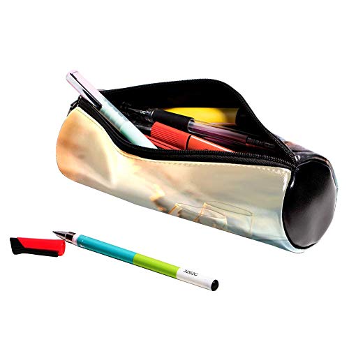 EZIOLY - Estuche para lápices de piel con dos copas de vino tinto y luz del sol, bolsa de maquillaje, bolsa para cosméticos, para estudiantes, papelería, escuela, trabajo, oficina, almacenamiento