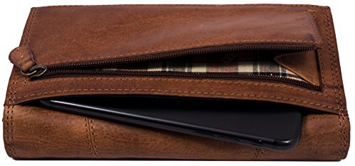 Hill Burry Cartera de Cuero para Mujer | Billetera - Monedero de Cuero Genuino con Aspecto Vintage | Mujeres - Hombre | XXL Largo Grande Capacidad (marrón)