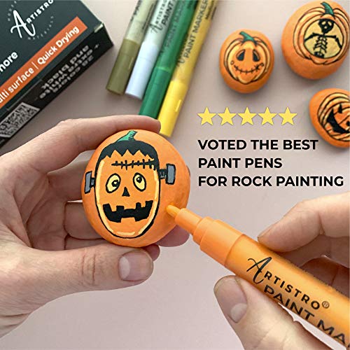 - CALIDAD PREMIUM Y DISEÑO ELEGANTE. Las plumas de pintura Artistro utilizan tinta acrílica vívida que se seca rápidamente para producir un acabado opaco y brillante muy duradero en casi todas las superficies.