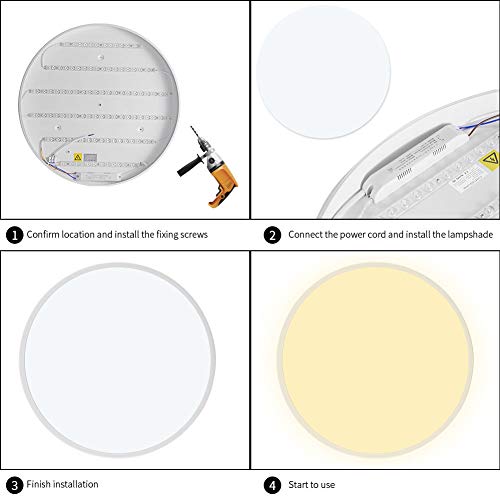 - 【Fácil de Instalar】:Esta luz de techo LED es muy ligera y delgada, esta luz de techo LED es fácil de instalar y se puede montar fácilmente en el techo o la pared.