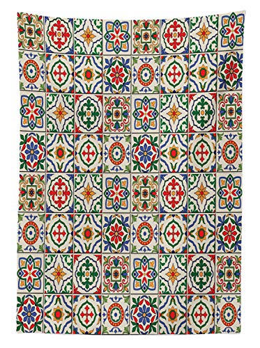 ABAKUHAUS marroquí Mantele, Extracto de la Hoja Ornamental, Estampa Personalizada Vívida No Destiñe Apto Uso Exterior, 140 x 240 cm, Multicolor