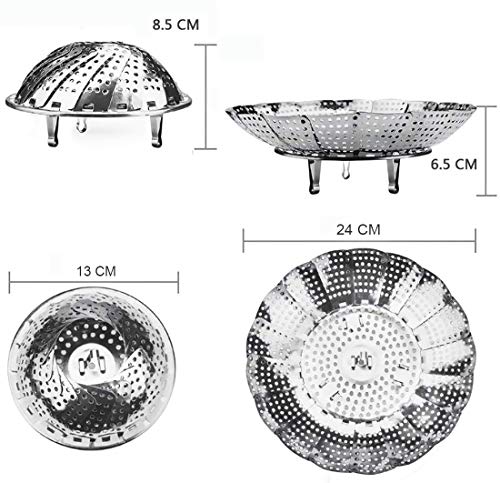 Vicloon Cesta Vaporera Plegable de Acero Inoxidable,Steamer Cesta Plegable,Malla Agujeros 14-23 cm