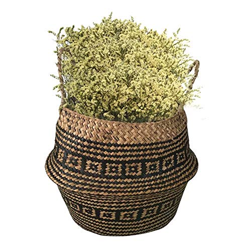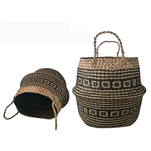 SUNXIN Seagrass cesta de cesteria de mimbre plegable colgante maceta de flores maceta sucia de lavanderia cesto de almacenamiento cesta decoracion para el hogar talla (27 X 23cm)