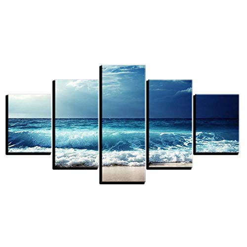 YJJPP Lienzo HD Imprime póster Arte de Pared de Sala de Estar 5 Piezas Olas Azules Antes de la tormenta Pinturas de Paisaje Marino imágenes modulares decoración del hogar