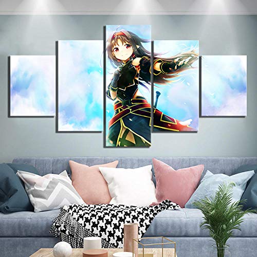 WSQQT Impresiones sobre Lienzo 5 Piezas Sword Art Online Anime Decoración Pintura Cuadros Modulares Cocina Restaurante Lienzo Póster (Sin Marco) Tamaño C