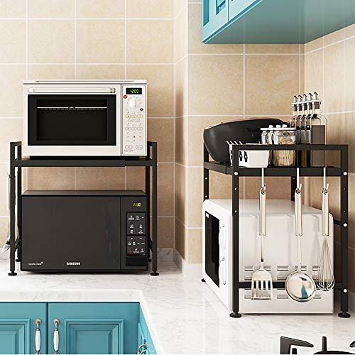 - 【Ahorrar Espacio】Estante de horno para microondas tiene 3 ganchos adicionales para ofrecer diferentes usos: colgar otros objetos pequeños y maximizar el espacio de su cocina. Puede colgar el trapo, guantes, etc.