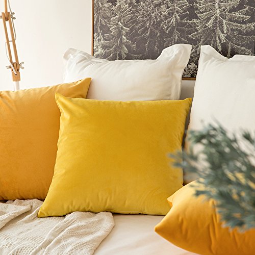 MIULEE Pack de 2, Terciopelo Suave Juego de Mesa de Manta de decoración Cuadrado Fundas de Almohada Funda de cojín para sofá dormitorio18 x 18 Pulgada 45 x 45 cm Amarillo limón
