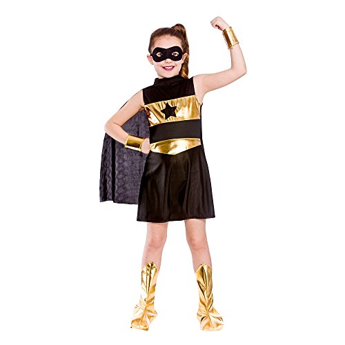 Wicked Costumes Disfraz de superheroína para niña, Color Negro. Talla pequeña: 3-4 años (110-122cm)