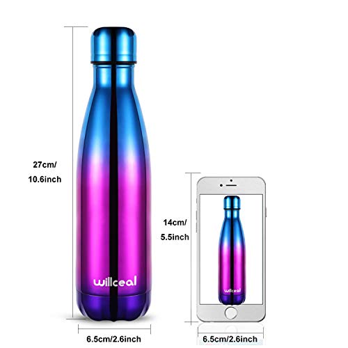 willceal Botella de Agua de Doble Pared de Acero Inoxidable con Aislamiento al vacío, 500 ml, a Prueba de Fugas, para Mantener el frío y Bebidas Calientes, para Deportes al Aire Libre, Camping, etc