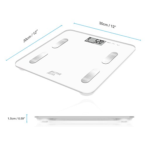 Active Era™ – Báscula de baño ultrafina para medir la grasa corporal. Analizador con% de grasa corporal, IMC, edad, peso y altura (blanco)