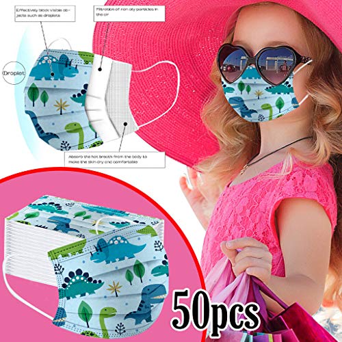 Earleye0 50 Piezas Niños Protección Desechable para Impresión linda 3 Capas Transpirables con Elástico para Los Oídos