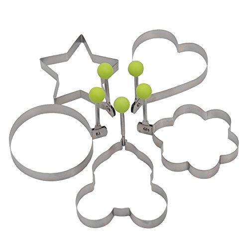 - DISFRUTE DE UN DESAYUNO COLORIDO: Juego de 5 anillos de huevo frito con formas diferentes: Estrella; corazón; Redondo; Flor de ciruelo; Mickey. Diseño especial para cocinar huevos o panqueques para su amante y su familia.