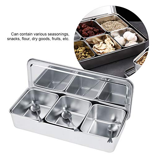 Duokon Caja de condimentos, Juego de recipientes de Especias de 3 Rejillas para el hogar Caja de condimentos de Acero Inoxidable Frasco de Almacenamiento de condimentos con Tapa para cucharas