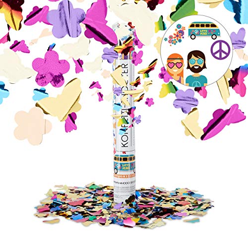 - Accesorio de fiesta: Este confeti metálico queda genial en fiestas de los años 60 y 70 o en cumpleaños de niños · El cañón de confeti de 40 cm contiene más de 1000 piezas