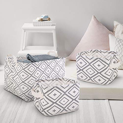 LessMo 3PCS Cestas de Almacenamiento, Cesta de Almacenamiento de Lona Plegable con Asas para Hogar Oficina Estanterías Armarios Ropa Juguetes y mas, Uno Grande y Dos Pequeños