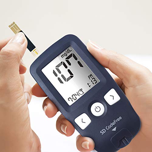 SD Codefree Glucometro Lector Medidor de niveles de glucosa y azucar en Sangre Kit de control de la Diabetes y la Glucemia en mg/dL - Incluye 10 tiras y estuche