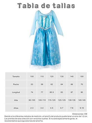 YOSICIL Princesa Disfraz de Princesa Frozen Elsa Disfraces de Princesa Gradiente Fancy Dress Elasticidad niƱa Lentejuela Impreso Nieve Accesorios con Capas 3-9 aƱos (110CM, Azul)