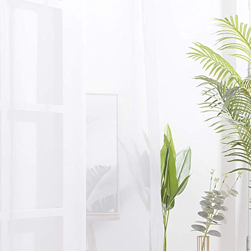 MIULEE Cortinas Poliéster Translucida de Dormitorio Moderno Ojales Cortina Ventana Visillos Salon para Sala Cuarto Dormitorio Comedor Salon Cocina Salón de 2 Unidades 140 x 245cm Blanco