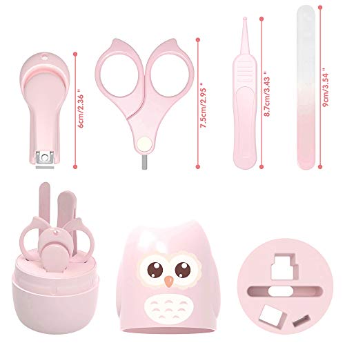 HyAdierTech Juego de cortaúñas para bebé - Juego de pedicura para bebé - Kit de aseo para bebé - Juego de cuidado para guardería con tijera de seguridad + Lima para uñas + Pinzas (rosado)