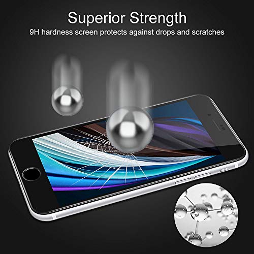 - [Protección de grado superior]: 9H dureza, resistente a los arañazos, el protector pantalla iPhone SE Puede proteger la pantalla del móvil contra rayaduras y roturas.