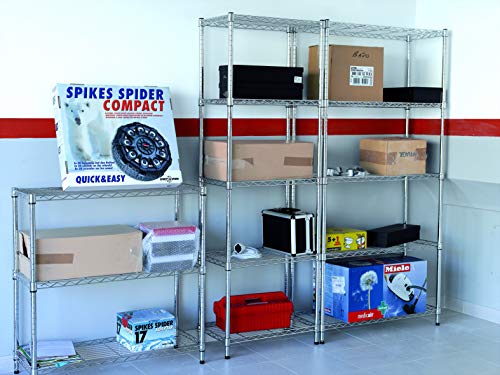 - Estantería cromada con 6 estantes y doble posibilidad de montaje; con certificación nsf ( organización para la salud y seguridad pública)