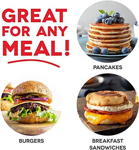 - Diseño compacto: Este aparato versátil para cocinar puede ser utilizado para hacer gofres, sándwiches de desayuno, huevos, croquetas de patata, bacon, tostadas francesas, crepes, y mucho más!